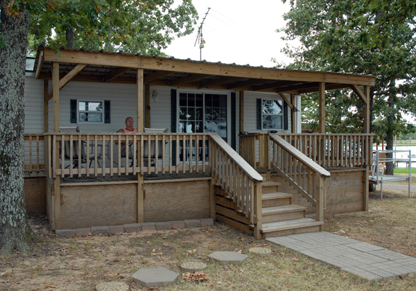 Doug was working on his rain gutters when I got there. His place is nice with a wooden deck, car port, and 15 Burr Oak trees. He lives in a gated area called Mustang Ranch. If I told you the gate combination and where Doug's place is, I'd have to kill you.
