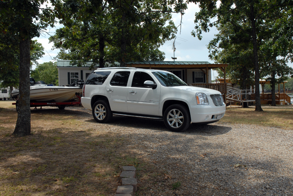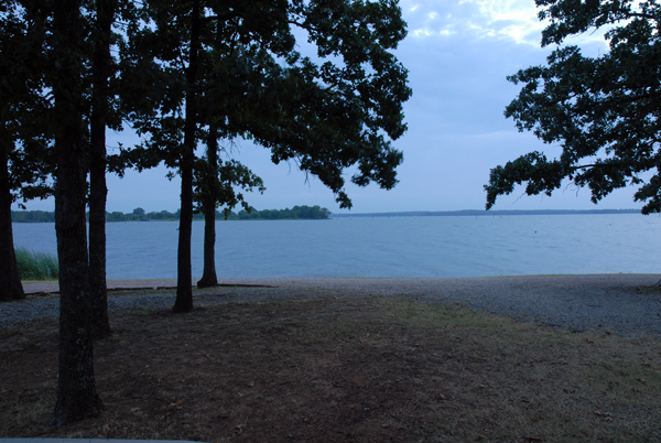 We drove around the lake looking for a place to eat. Doug said there is a good steak house, hamburger joint, and several other good places to eat. However, most of the restaurants were closed and are only open Wednesday through Sunday. We stopped at a new place and had steak and catfish. The place was called Ranch House Steak and Seafood and they are open all of the time. The next day we will have hamburgers for lunch.