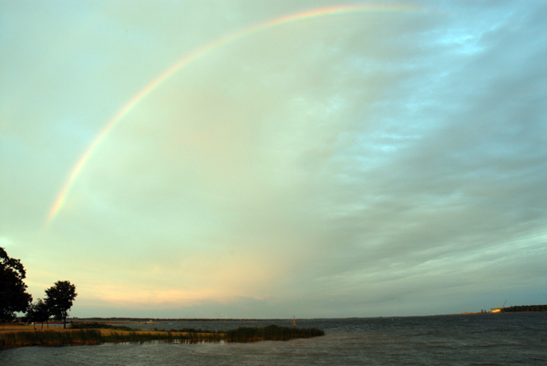 It was a very windy day as a hurricane had gone through Galveston and we were starting to get the wind and some rain. It was too windy to take the boat out. Before dark, we saw an incredible rainbow. Doug had never seen a full rainbow. It looked like a rainbow with double the colors.