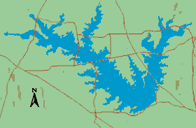 Lake Fork is shaped like a V and Doug's place is on the left side off FM 17 and CR 1550, or the Sabine River side.