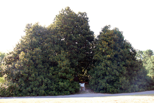 The Magnolia tree with hanging branches on both sides creates what looks like two more