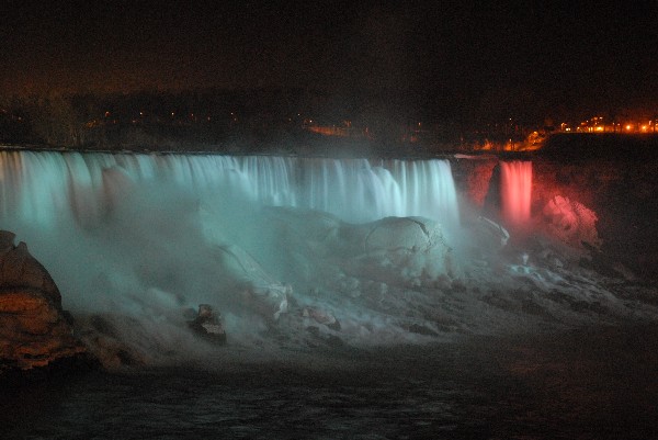We left the cemetery and drove up and through Erie, PA, and took the toll road [only $2.60] through the Seneca Indian area of New York on our way to Buffalo. We saw several signs - "Keep your treaties with the Indians" and "Break a treaty, break a law." Buffalo is one old town. We drove over the Peace Bridge into Canada and made it to Niagara Falls, Canada, at dinner time. After it got dark, we drove to the falls and took photographs at night.