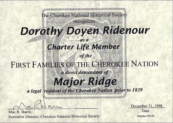 Major Ridge to Dorothy Louise Ridenour