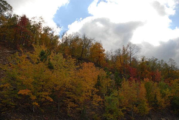 Our third Corvette road trip took us to Octavia, Oklahoma, to see the fall foliage. It was one week after Dottie's birthday and a week before our 20th anniversary. We left Dallas at 9:15 AM and ate lunch at the Cedar Shed in Hugo, Oklahoma. We drove through Idabel and Broken Bow and got to our cabin about 2:30. We stayed in the Eagle's Nest cabin which is part of the Eagle Creek Guest cottages - www.guestcottages.com. The cabin is the closest one to the river and is $200 a night (2-night minimum) this time of year. The cabin had a fireplace, Jacuzzi, and an outside brick grill on the patio. The trees were peaking with the reds, yellow, and oranges. We usually spend our time in Oklahoma in the northeast section or the Cherokee Nation but this trip was in the southeast and in the Choctaw Nation. We must have seen at least seven historical markers mentioning Choctaws.